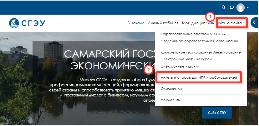 Чтобы пройти анкетирование или опрос, сначала авторизуйтесь в СУО СГЭУ под своим логином и паролем.